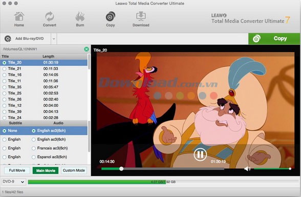 Ba chế độ sao chép linh hoạt – Full Movie, Main Movie và Custom Mode – cho phép bạn sao lưu phim DVD theo ý muốn. Đồng thời, lựa chọn và lưu lại các phụ đề và track audio yêu thích của bạn.