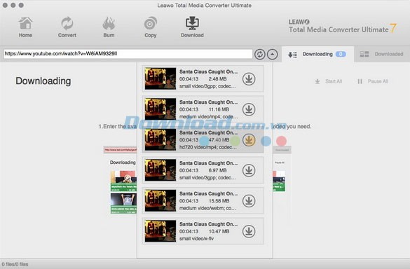 Tất cả các video được tìm thấy sẽ được trình bày với các mức chất lượng khác nhau. Hãy chọn phiên bản có độ phân giải phù hợp với nhu cầu của bạn. Sau đó, nhấp vào biểu tượng tải xuống để bắt đầu quá trình. Tiến độ tải về sẽ được cập nhật liên tục trong cửa sổ Downloading.