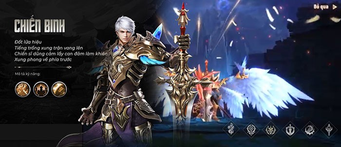 - Kỹ năng: Trảm Lửa, Lốc Xoáy, Thần Kích Lăng Không, Liên Trảm Phi Thiên, Kiếm Tinh Ma