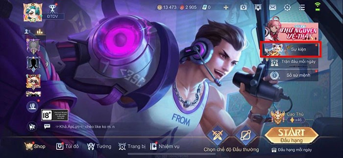 Bước 1: Khởi động ứng dụng Liên Quân Mobile trên thiết bị của bạn. Sau đó, hãy nhấn chọn mục Sự kiện, được đặt ở phía bên phải màn hình chính.