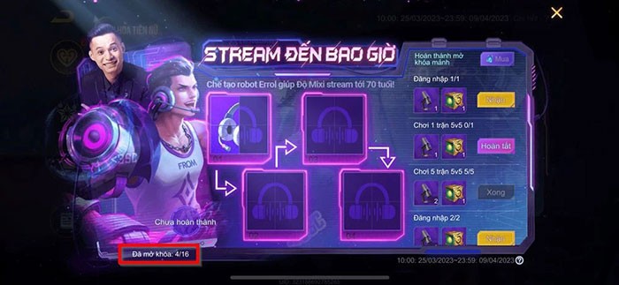 Bước 3: Giao diện hiển thị các nhiệm vụ của sự kiện sẽ xuất hiện. Danh sách nhiệm vụ sẽ được liệt kê ở phía bên phải màn hình. Hoàn thành mỗi nhiệm vụ, bạn sẽ nhận được một trong bốn mảnh của Robot Errol.