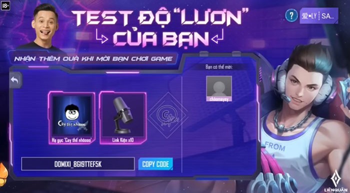 Đối với các phần thưởng khác, người chơi cần sao chép mã mời của mình và chia sẻ với những người bạn đã từng chơi Liên Quân Mobile để họ quay trở lại trò chơi, từ đó nhận thưởng.