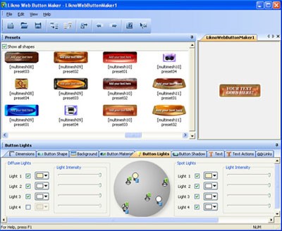 Likno Web Button Maker là công cụ tạo button 3D cho trang web, cung cấp nhiều kiểu mẫu đẹp, cho phép tùy chỉnh background, thêm text và hiệu ứng, sau đó xuất ra hàng loạt button cho thanh navigate bar.