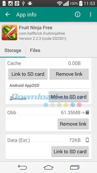Khả năng chuyển đổi các dữ liệu bên trong ứng dụng sang thẻ nhớ SD để giải phóng dung lượng.