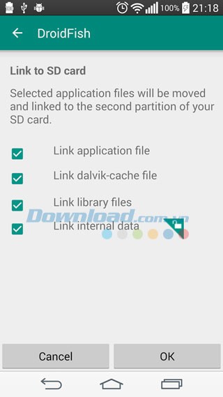 Liên kết các tập tin ứng dụng như apk, dex và lib vào bộ nhớ thẻ nhớ SD.