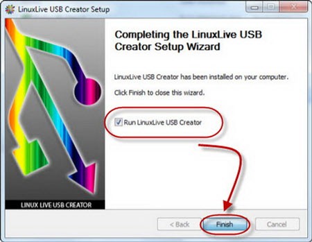 Phần mềm này hoàn toàn miễn phí và quá trình thực hiện chỉ bao gồm 5 bước đơn giản, được thực hiện trên một giao diện duy nhất. Sau khi cài đặt hoàn tất, hãy đảm bảo tùy chọn Run LinuxLive USB Creator vẫn được chọn để khởi động chương trình ngay lập tức.