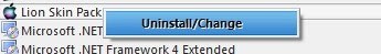 Từ danh sách các phần mềm, hãy chọn gỡ bỏ ứng dụng Lion Skin Pack 4.0.
