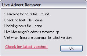 Live Advert Remover là giải pháp giúp chặn toàn bộ các banner quảng cáo xuất hiện trong giao diện Live Messenger.
