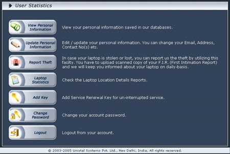 Để kiểm tra vị trí laptop đã đăng ký, bạn có thể đăng nhập vào hệ thống bằng thông tin vừa tạo. Truy cập các trang web như Laptop - Theft, Find, Laptop recovery, Lost Laptop, Data Security, Employee tracking, Laptop Travel Security và chọn Login.