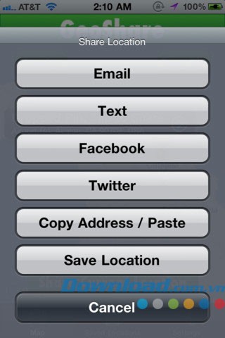 Các tính năng chia sẻ của Location Manager Lite: