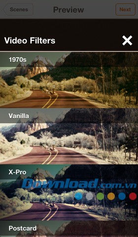 Ứng dụng cung cấp hơn 20 bộ lọc video HD thời gian thực, môi trường và các hiệu ứng đặc biệt. Bạn có thể dễ dàng tạo một đoạn hồi tưởng trên nền đen trắng bằng bộ lọc tương ứng.