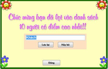 Nhập tên và nhấn nút Lưu lại để ghi danh thành tích của bạn.