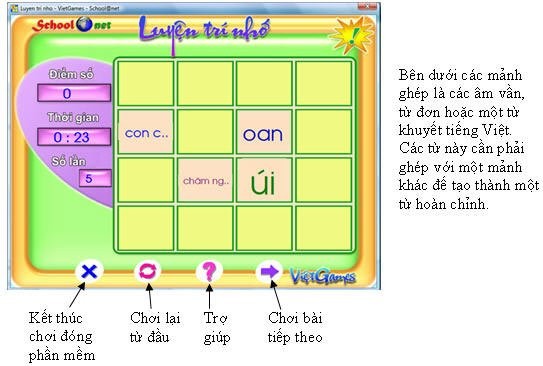 - Luyện trí nhớ 4, 5, và 6 được tích hợp trong CD Việt Games 6.1.
