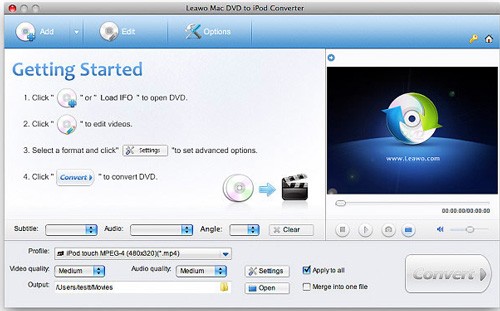 Leawo Mac DVD to iPod Converter là một công cụ được thiết kế để giúp người dùng Mac chuyển đổi nội dung từ đĩa DVD sang định dạng MP4 tương thích với các thiết bị iPod. Phần mềm này cung cấp các thiết lập chất lượng cao, đảm bảo quá trình chuyển đổi diễn ra một cách tối ưu.