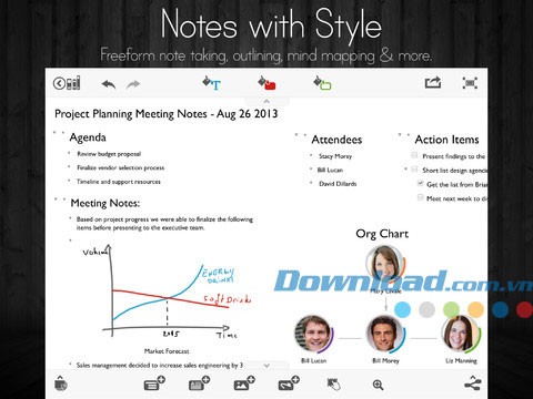 Bố cục tự do được cải tiến cho phép bạn tự do sáng tạo, kết nối các ghi chú, đính kèm tài liệu và chú thích bằng hình ảnh hoặc bản vẽ.