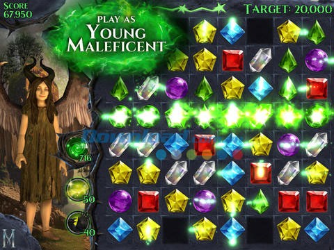 Tận dụng phép thuật mạnh mẽ của Maleficent để chuyển đổi toàn bộ các viên kim cương trên bảng thành một màu duy nhất. Bên cạnh đó, người chơi có thể triệu hồi Diaval để sắp xếp lại các viên kim cương một cách chiến lược, hoặc sử dụng tia sét để xóa bỏ hàng và cột.