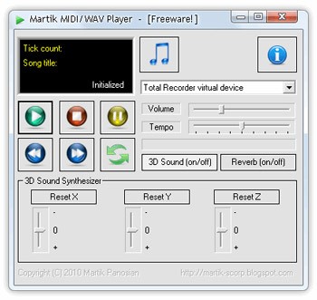 Martik MIDI/WAV Player là ứng dụng nhỏ, đơn giản có khả năng chơi các tập tin MIDI, WAV, và Segment.