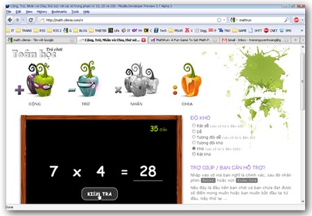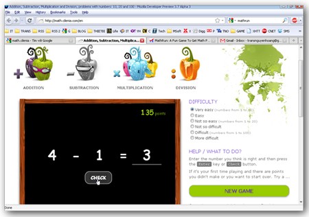 Thông thường, những phép toán này đã được giới thiệu đến các em học sinh trên lớp, với độ khó tăng dần. Nhiệm vụ của học sinh là điền đáp án chính xác vào mỗi bài toán, sau đó nhấn nút "Check" để kiểm tra kết quả. Khi đưa ra câu trả lời đúng, Mathematics sẽ trao cho các em một điểm số, hiển thị ở góc trên bên trái màn hình.