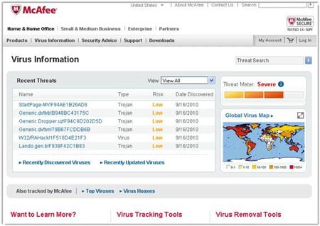 Trang này tập trung vào việc cung cấp các thông tin liên quan đến các loại virus mới nhất, được cập nhật bởi McAfee – một công ty phần mềm bảo mật uy tín hàng đầu.