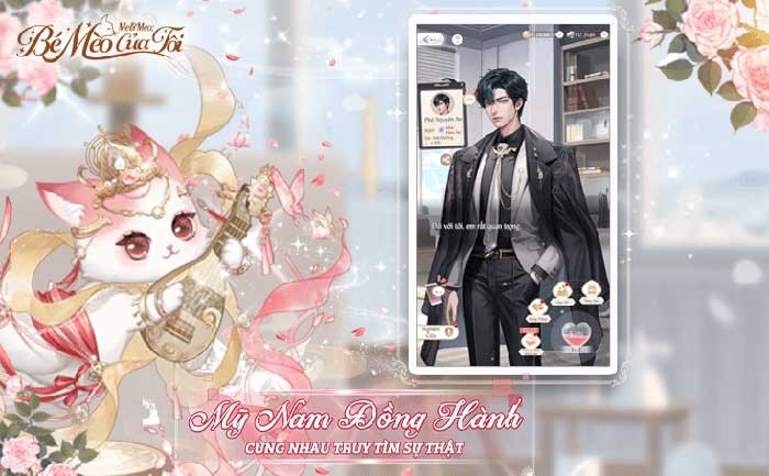 Bên cạnh việc phát triển sự nghiệp kinh doanh, người chơi còn có cơ hội trải nghiệm những câu chuyện tình lãng mạn với những chàng trai điển trai. Hãy gặp gỡ, hẹn hò và lựa chọn người mà bạn muốn trao gửi trái tim mình trong thế giới của Me&Meo: Bé Mèo Của Tôi.
