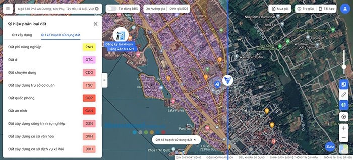 - So sánh bản đồ: Cho phép so sánh trực tiếp giữa lớp bản đồ quy hoạch và lớp bản đồ thông thường.