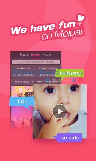 Meipai là một phần mềm độc đáo, mang đến trải nghiệm tạo video hoàn toàn mới trên các thiết bị di động sử dụng hệ điều hành Android và iOS. Hiện nay, ứng dụng này đã xây dựng được một cộng đồng lớn mạnh với hơn 100 triệu người dùng thường xuyên chia sẻ những video ấn tượng.