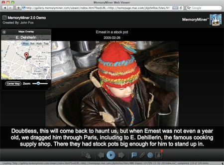 Việc chia sẻ thư viện hình ảnh kèm theo văn bản MemoryMiner trở nên đơn giản, cùng với khả năng xuất bản các thông tin cập nhật từ website thông qua ứng dụng và tài khoản MobileMe (.Mac) trên bất kỳ máy chủ web nào.