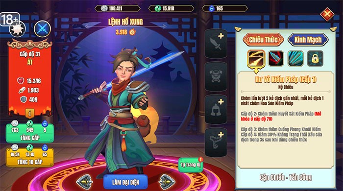 Sau khi sở hữu các nhân vật mới, việc nâng cấp họ là bước không thể thiếu để gia tăng sức mạnh. Hãy đến Đệ tử để tiến hành nâng cấp và mở khóa các kỹ năng mới cho các anh hùng hiện có, nhằm cải thiện đáng kể khả năng chiến đấu của họ.