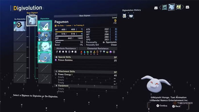 Digivolution là yếu tố then chốt để tăng cường sức mạnh cho Digimon, nhưng De-Digivolution cũng không kém phần quan trọng. Thông thường, một Digimon có thể tiến hóa thành 4-6 dạng khác nhau, mỗi dạng đòi hỏi một mức chỉ số tối thiểu nhất định.