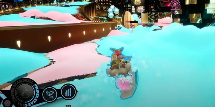 Ngay cả khi di chuyển trên những vệt bọt mờ nhạt, ván trượt vẫn cải thiện tốc độ của nhân vật, cho phép họ vượt qua đối thủ nhanh chóng, đặc biệt khi kết hợp với việc nảy bọt và leo lên các ngọn đồi bọt.