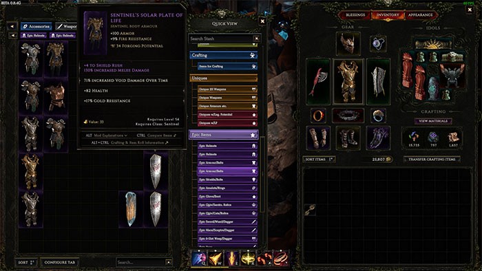 Việc lấp đầy kho đồ bằng rìu khi bạn là một Rogue chẳng mang lại lợi ích gì, đặc biệt là trong giai đoạn đầu của trò chơi. Thay vào đó, hãy tập trung thu thập vũ khí và áo giáp phù hợp với lớp nhân vật hiện tại của bạn để có đủ không gian chứa đồ.