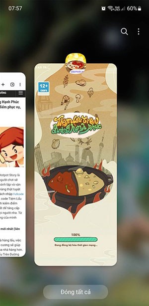 Bước 1: Khởi động ứng dụng Tiệm Lẩu Đường Hạnh Phúc trên thiết bị của bạn. Sau đó, hãy kích hoạt chế độ đa nhiệm để hiển thị giao diện của các ứng dụng đang chạy đồng thời.