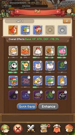 Sau đó, sử dụng Quick Equip để tự động trang bị những vật phẩm mạnh nhất cho đội hình của bạn. Sở hữu một đội ngũ đồng đội và bộ kỹ năng tối ưu sẽ tạo điều kiện thuận lợi đáng kể cho sự phát triển của game thủ trong Legend of Mushroom.