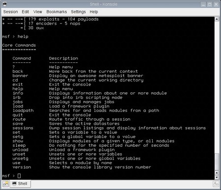 - Giao diện dòng lệnh (Command Line Interface): Sử dụng lệnh msfcli.bat, cho phép thực hiện các tác vụ thông qua dòng lệnh.