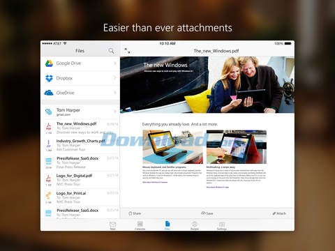 - Xem và đính kèm tệp tin từ email, OneDrive, Dropbox và các tài khoản lưu trữ khác một cách dễ dàng.