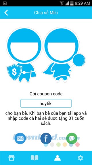 - Người dùng có cơ hội đọc sách bản quyền miễn phí bằng cách giới thiệu ứng dụng cho bạn bè và sử dụng mã coupon được cung cấp.