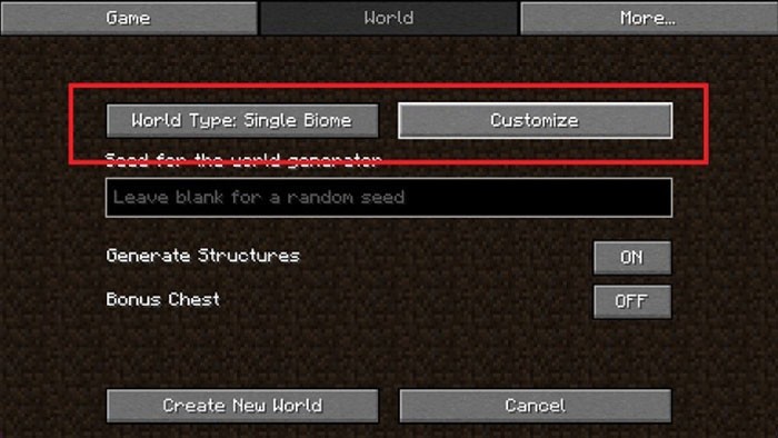 Để bỏ qua hoàn toàn giai đoạn khám phá, bạn có thể tạo một thế giới chỉ bao gồm quần xã Cherry Grove bằng các bước sau: