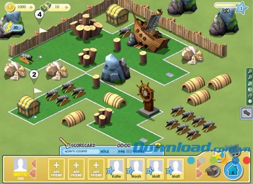 Thỏa sức kiến tạo sân golf mini theo phong cách riêng. Bạn có thể lựa chọn từ nhiều loại công trình như cối xay gió, núi lửa, tàu cướp biển… để cá nhân hóa sân chơi của mình.