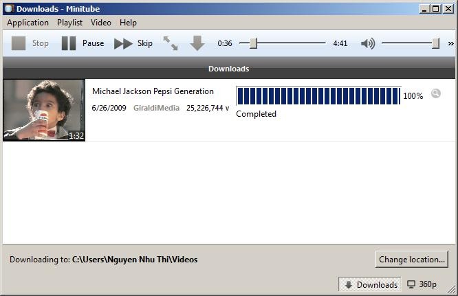 Nếu bạn muốn thay đổi thư mục mặc định để lưu trữ các video đã tải, hãy nhấp vào nút Change location trong cửa sổ Downloads.