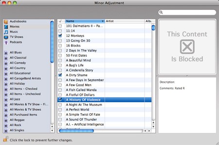 Đây là một tiện ích đơn giản, sở hữu giao diện thân thiện, trực quan và dễ dàng thao tác. Nó có khả năng chặn các ứng dụng như Audiobooks, Music, Movies, TV Shows và Podcasts, ngăn chặn việc mở trực tiếp hoặc xem trước thông qua iTunes, iPod, iPhone và Apple TV.