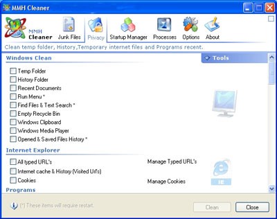 Việc sử dụng MMH Cleaner góp phần nâng cao tính bảo mật cho máy tính bằng cách xóa sạch lịch sử duyệt web, các tài liệu gần đây, dữ liệu trong Clipboard Windows, lịch sử phát của Media Player và các file đã mở hoặc lưu trữ.