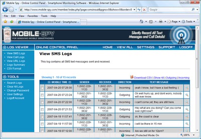 Mobile Spy hoạt động hoàn toàn bí mật và không hiển thị bất kỳ thông tin nào về chương trình trên iPhone. Sau khi cài đặt, chương trình bí mật ghi lại toàn bộ nội dung tin nhắn SMS và các số điện thoại liên quan, cùng với thông tin cuộc gọi đến và đi, thời gian cuộc gọi.