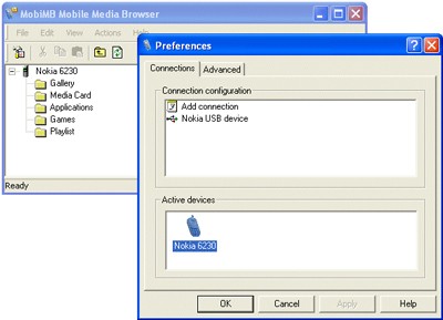 - Làm thế nào để thiết lập kết nối cho MobiMB Mobile Media Browser? Sau khi cài đặt, chọn File/Settings…, nhấn đúp chuột vào Add Connection. Chọn kiểu kết nối phù hợp: Cable Connection (Serial or USB)/FBUS cable nếu dùng cable Com, Cable Connection (Serial or USB)/DKU-5 cable nếu dùng cable USB (chọn cổng Com phù hợp), Infrared connection nếu dùng hồng ngoại, hoặc Bluetooth connection nếu dùng Bluetooth.