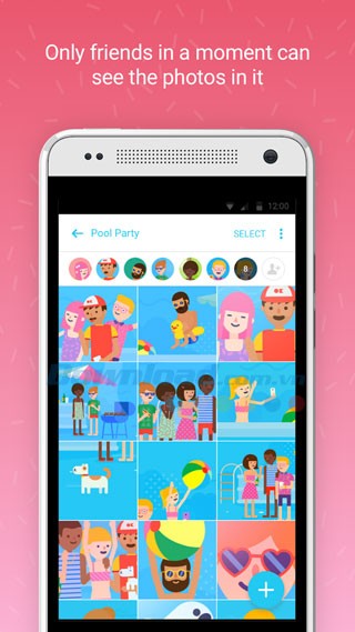 Moments cho phép lưu trữ ảnh từ những người bạn đã đồng bộ trực tiếp vào thư viện ảnh trên thiết bị của bạn.