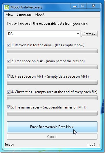 Với Moo0 Anti-Recovery, bạn có thể tự tin rằng thông tin cá nhân, tài liệu mật, hoặc bất kỳ dữ liệu nào bạn muốn bảo vệ sẽ được xóa vĩnh viễn, ngăn chặn mọi nỗ lực truy cập trái phép.