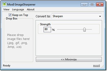 Việc sử dụng chương trình này cực kỳ đơn giản. Bạn chỉ cần kéo và thả các tập tin ảnh trực tiếp vào giao diện của Moo0 ImageSharpener.