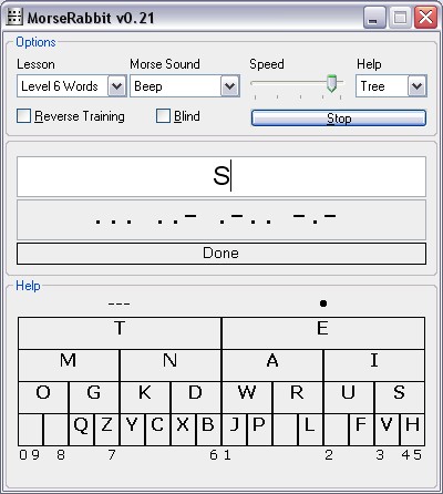 - Chế độ thông thường: Trong chế độ này, người học sẽ được trình bày một chuỗi mã Morse (cả trực quan lẫn âm thanh) và cần nhập chính xác các ký tự tương ứng trong một khoảng thời gian nhất định.