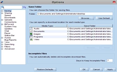 Tab "My Downloads" là nơi chứa tất cả những file bạn đã tải về máy tính. Bạn có thể thay đổi đường dẫn thư mục lưu trữ bằng cách vào menu "Tools", chọn "Options", sau đó nhấp vào nút "Saving" và chọn đường dẫn mới bằng cách nhấn "Browse".