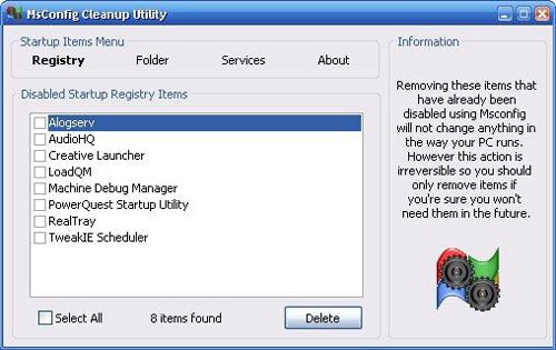Để giải quyết vấn đề này, chúng ta có thể sử dụng MsConfig Cleanup Utility. Tiện ích này có khả năng quét các cấu hình khởi động và cho phép bạn xóa bỏ bất kỳ hoặc tất cả các mục đã từng bị vô hiệu hóa thông qua công cụ Msconfig.