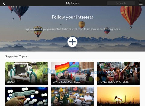 Lựa chọn và theo dõi các chủ đề bạn yêu thích, chẳng hạn như tin tức về đội thể thao bạn ủng hộ, các ngôi sao điện ảnh nổi tiếng hoặc những sản phẩm công nghệ sắp ra mắt. Bạn có thể đăng nhập bằng tài khoản MSN để lưu lại những lựa chọn này.